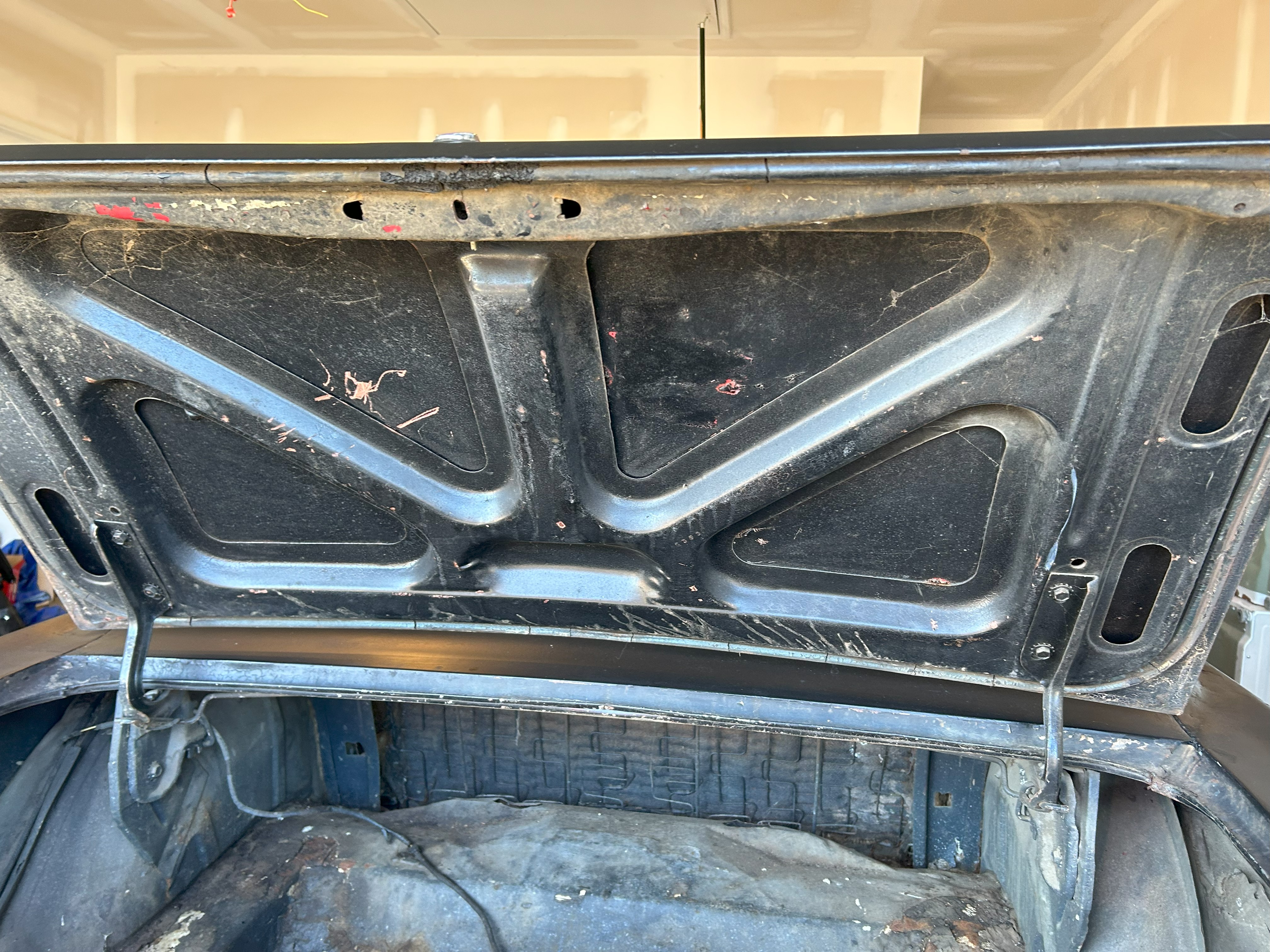 Complete chassis stripping followed by extensive cowl surgery, rear quarter-panel replacement, and a full trunk restoration to ensure a lifetime of structural soundess.